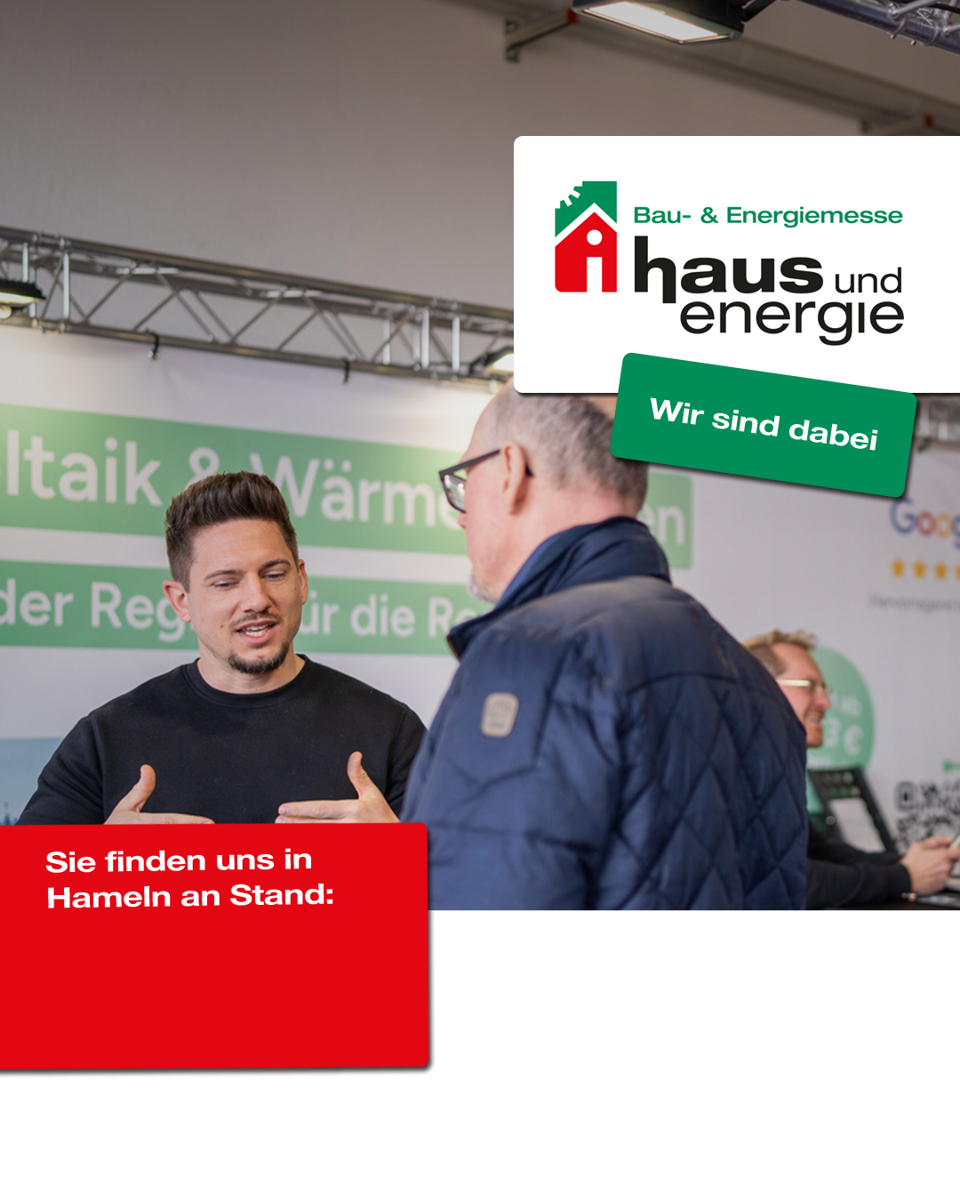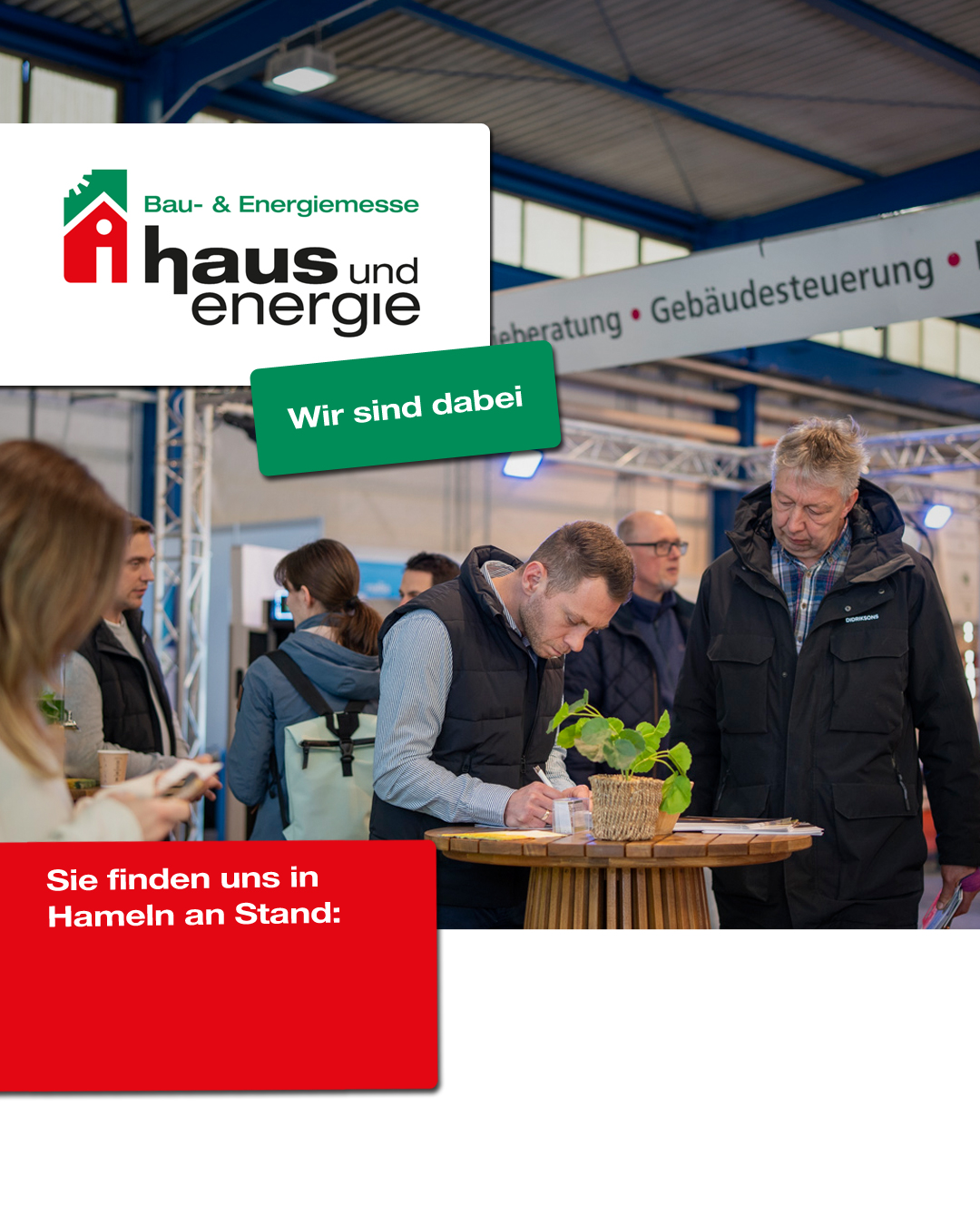 Teilen Sie Ihren Kunden mit, dass Sie auf der „haus & energie“ in Hameln mit einem Beratungsstand vertreten sind.